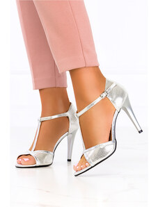 Srebrne sandały skórzane damskie szpilki błyszczące t-bar PRODUKT POLSKI Casu 2493