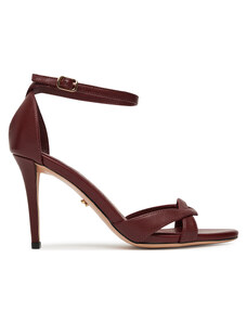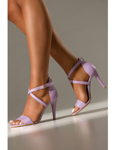 Wrzosowe sandały skórzane damskie szpilki z zakrytą piętą paski na krzyż PRODUKT POLSKI Casu 2628-834