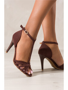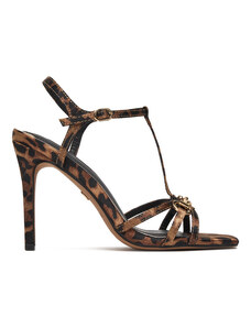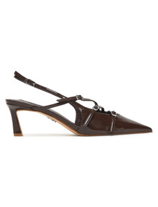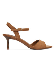 Brązowe sandały skórzane damskie szpilki z zakrytą piętą t-bar PRODUKT POLSKI Casu 3056-650