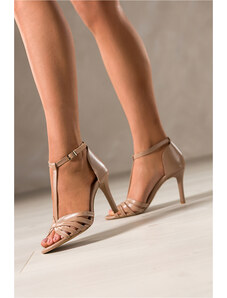 Złote sandały skórzane damskie szpilki błyszczące t-bar PRODUKT POLSKI Casu 2493