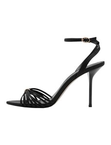 Czarne sandały damskie szpilki Sergio Leone paski z cyrkoniami skórzana wkładka SK924-CA-NO