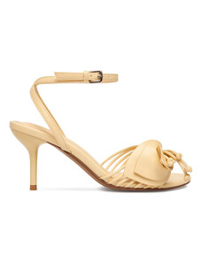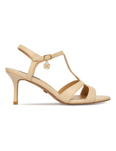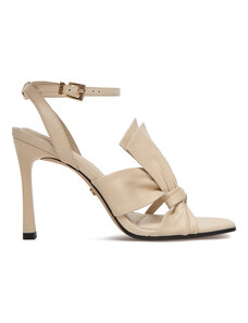 Obuwie Damskie Sandały Niska Szpilka skóra naturalna Beżowe 990 ElitaBut