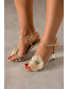 Złote sandały damskie złoty obcas kieliszek paski z cyrkoniami kwiat Carla E-793