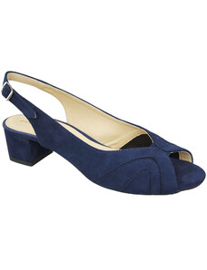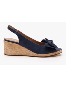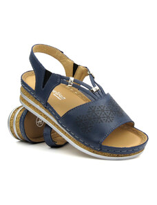 Skórzane sandały damskie na delikatnym koturnie - HELIOS Komfort 125, granatowe