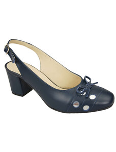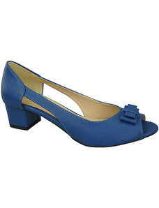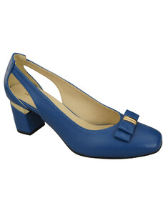 Buty Czółenka Damskie Niebieskie z Naturalnej Skóry z Ozdobnym Obcasem 199 ElitaBut