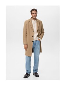 MANGO MAN - Płaszcz z wełny Manteco z klapami średni brązowy - XL - Mężczyzna