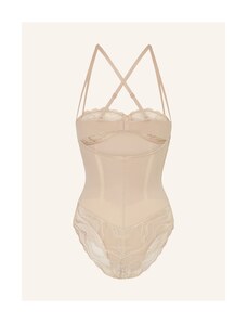 **Artykuł charakteryzuje się zaniżoną rozmiarówką*. . Efekt modelujący: wysoki stopień. Obcisły krój. Nieprzezroczysty materiał. Dekolt w serek. Marszczenia na dekolcie dla wyjątkowo dobrego efektu podniesienia biustu. Bez fiszbin. Bez fiszbin bocznych. Regulowane cienkie ramiączka. Klin z bawełny. Zatrzaski w kroku. Stretch