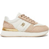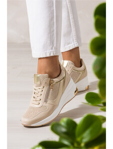 Beżowe sneakersy damskie sportowe półbuty na koturnie z błyszczącą siateczką sznurowane ze złotymi dodatkami skórzana wkładka Casu JW25X12-BE