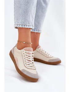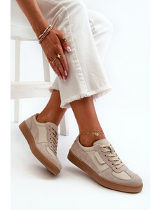 Butosklep Skórzane Sneakersy Damskie Na Platformie Artiker 55C0021 Beżowe