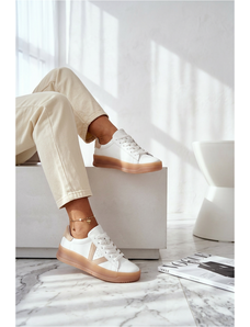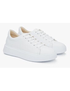 Sneakersy Damskie Z Naturalnej Skóry Na Platformie Vinceza 79597 Białe