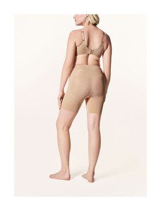 Efekt modelujący: wysoki stopień. Nieprzezroczysty materiał. Wysoki stan. Średnio długie nogawki. Całkowicie zakrywa pośladki. Z efektem push-up na pośladkach. Bez wcinania się w skórę dzięki bezszwowemu wykończeniu. Właściwości oddychające. Niewielka waga