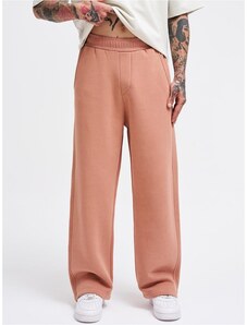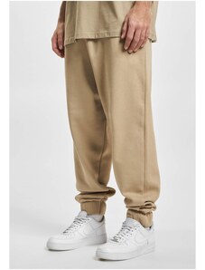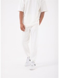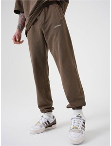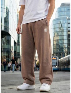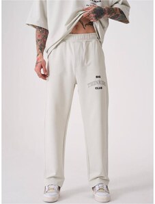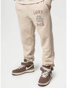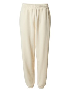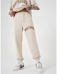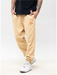 Beżowe spodnie dresowe o luźnym kroju. Posiadają trzy kieszenie i gumę w pasie regulowaną sznurkiem. Ozdobione z przodu dyskretnym nadrukowanym logo, z tyłu u dołu lewej nogawki znajduje się większy nadruk.