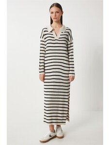 OBJECT Sukienka z dzianiny 'RAY' kość słoniowa / czarny