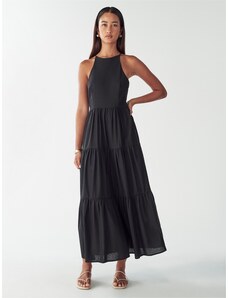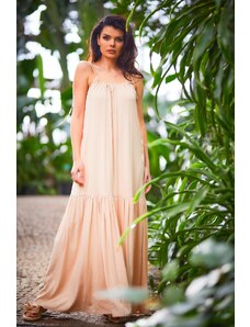 Awama Zwiewna sukienka na ramiączkach odkryte plecy - beżowa - Rozmiar: S/M