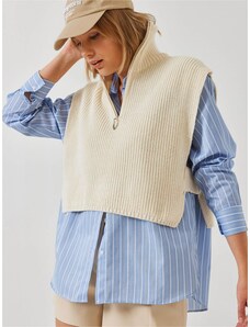 Bella x ABOUT YOU Kardigan 'Sarah' ciemny beż / oliwkowy / czerwony