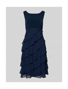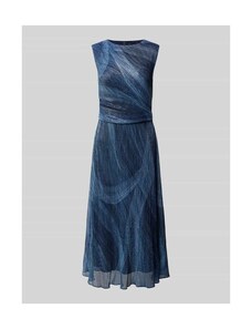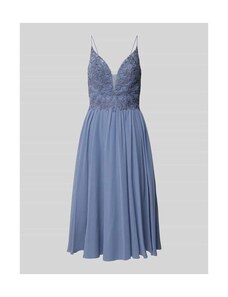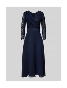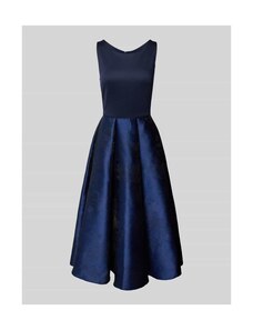 Sukienka koktajlowa SWING w długości midi z lejącym dekoltem podkreśla sylwetkę dzięki taliowanemu krojowi. Fakturowany wzór oraz halka pod spódnicę sprawiają, że całość prezentuje się subtelnie i wygodnie. Wycięcie w kształcie łezki z tyłu uzupełnia spokojny, kobiecy charakter.