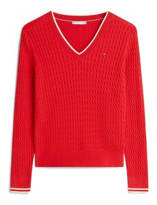 TOMMY HILFIGER Sweter 'Cable' granatowy / ciemny niebieski / czerwony / biały