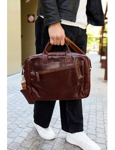 Torba męska skórzana na ramię laptopa duża ciemno-brązowa biznesowa Beltimore N01