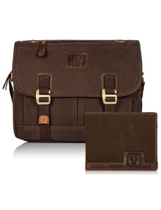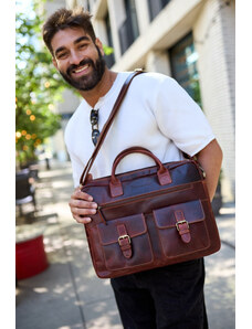 Torba męska skórzana na laptopa ramię komputer duża nubuk brązowa Beltimore N16