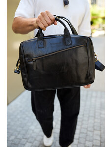 Torba męska skórzana na ramię laptopa duża czarna biznesowa Beltimore N01