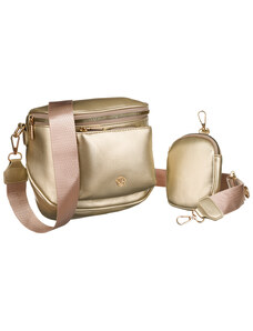 Vera Pelle Torebka Damska Listonoszka Skórzana Mała Złote Okucia Klapa