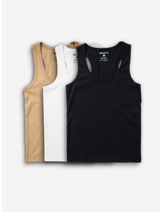 Zestaw 3 Damskich Tank Topów Biały / Czarny / Beżowy UrbanCity No Logo Basic