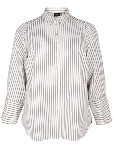 Styl bluzki: Klasyczna bluzka; Design: Mankiety na jeden guzik, Zaokrąglone mankiety, Nałożona plisa, Plisa na plecach, Zaokrąglone brzegi; Rodzaj zamknięcia: Zapięcie na guzik; Materiał: Wiskoza; Wzór: W paski; Kołnierzyk koszuli: Klasyczny kołnierz; Detale: Plisy; Dodatki: Wzór na całej powierzchni, Lejąca tkanina, Chłodny w dotyku; Krój: Normalny krój; Długość rękawa: Długi rękaw; Długość: Długość normalna. R-0.29. P-0.3376286047. RQ-0.49
