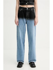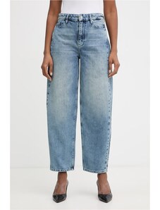Jeansy z kolekcji Versace Jeans Couture w fasonie paperbag z podwyższoną talią. Model wykonany z bawełnianego, ozdobnie spranego denimu.