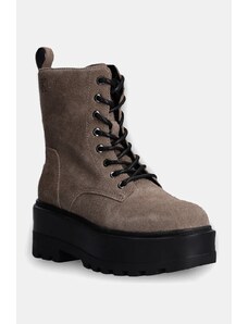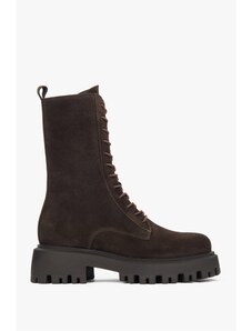 Estro: Ciemnobrązowe wysokie workery damskie z włoskiego weluru naturalnego Premium