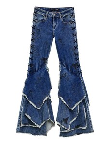 Design: Obszyte brzegi, Rozporek na zamek błyskawiczny, 5 kieszeni; Rodzaj zamknięcia: Zamek błyskawiczny; Materiał: Jeans; Wzór: Jednolite kolory; Dodatki: Nity, Kontrastujące szwy, Naszywka z logo, Szlufki na pasek; Pranie: Mocny efekt sprania; Długość: Długi / Maxi; Krój: Bootcut; Wysokość talii: Niska talia. R-0. P-0.3693310455. RQ-0.66